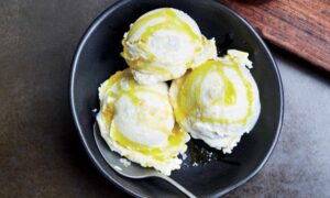 Το παγωτό με ελαιόλαδο είναι μια γαστρονομική πρόταση που εκπλήσσει – ένας ύμνος στην απλότητα, όπου το ελαιόλαδο δεν είναι συνοδευτικό, αλλά ο βασικός πρωταγωνιστής. Εδώ δεν υπάρχει μέλι, ούτε έντονα αρώματα – μόνο καθαρή γεύση, μεστή υφή και μια δημιουργική χρήση του πιο χαρακτηριστικού ελληνικού προϊόντος. Η συνταγή βασίζεται σε μια παραδοσιακή κρέμα παγωτού, η οποία μετατρέπεται σε κάτι